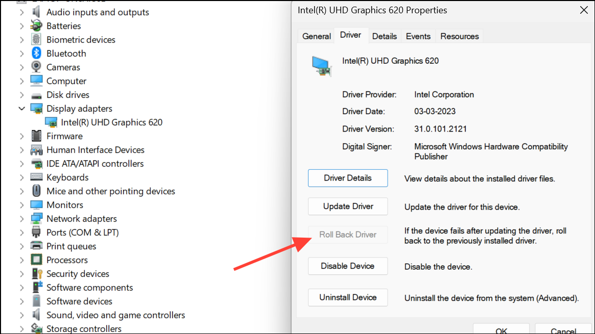 Step 4: If the issue persists, return to Device Manager, right-click the graphics card, and select Properties. Under the Driver tab, try Roll Back Driver if available, or download a stable version directly from the manufacturer's website.