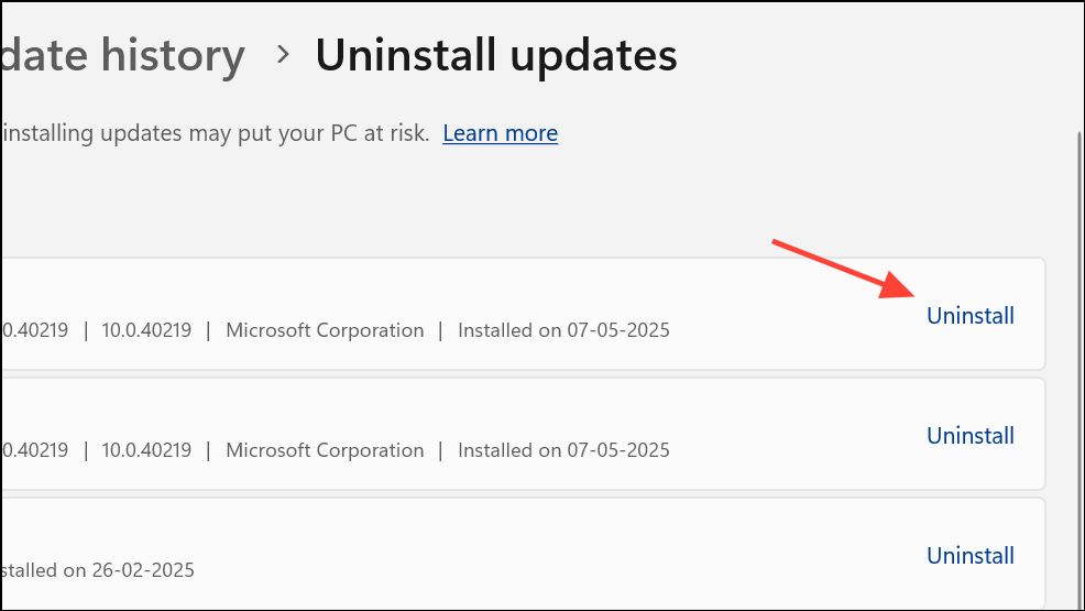 Step 3: Select the most recent update and click Uninstall. Restart your computer and test Explorer again.