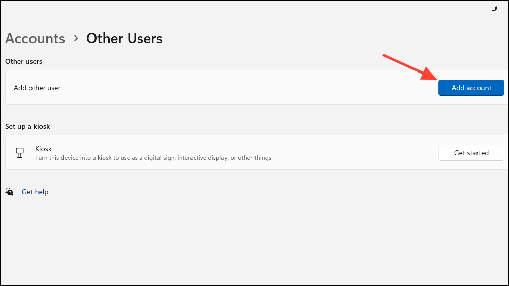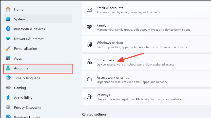 Step 1: Go to "Settings" > "Accounts" > "Other users."
