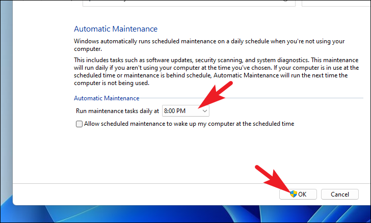 - Set the maintenance time to a period when you're not using your computer.