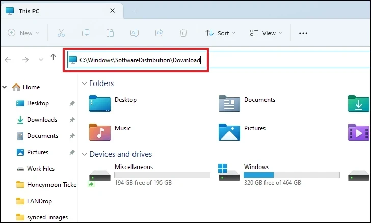 Enter:C:\Windows\SoftwareDistribution\Download