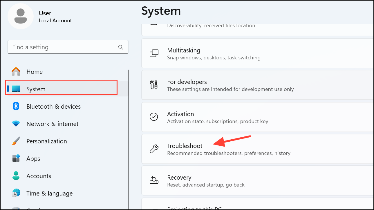 Step 1: Open Settings by pressing Win + I. Navigate to "System," then select "Troubleshoot."