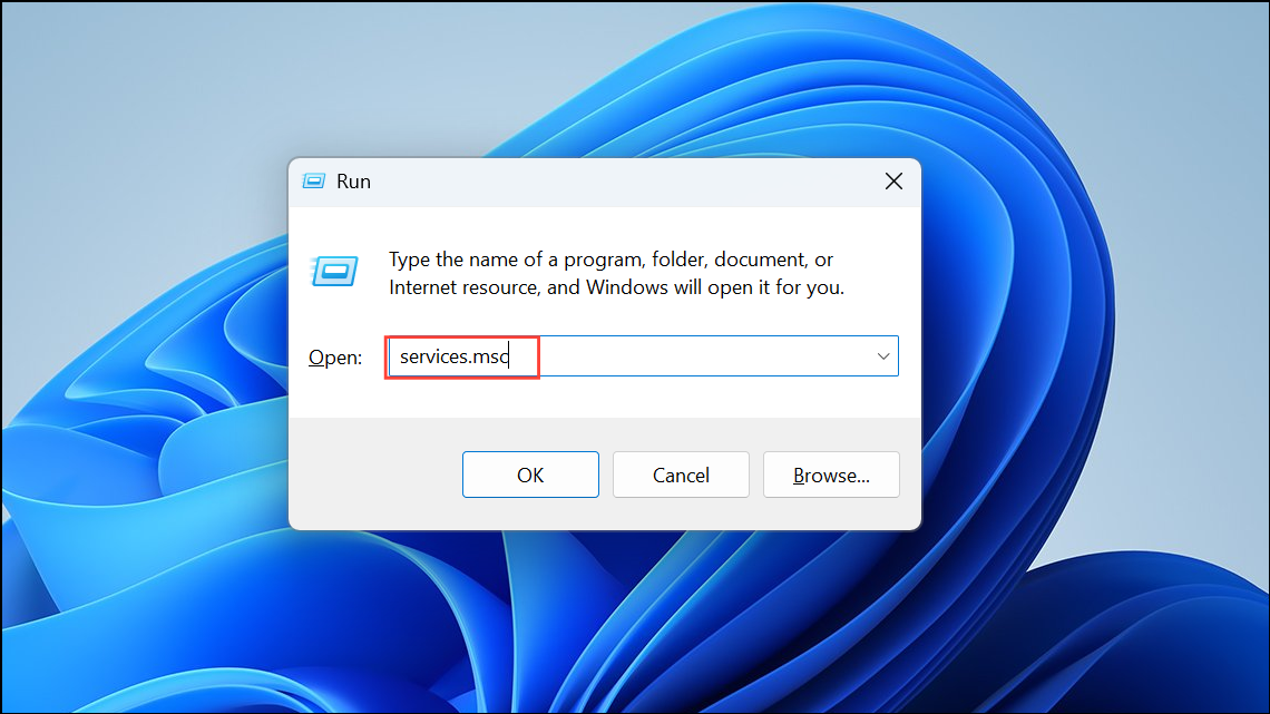 Step 1: Press Win + R to open the Run dialog box. Type services.msc and press Enter.