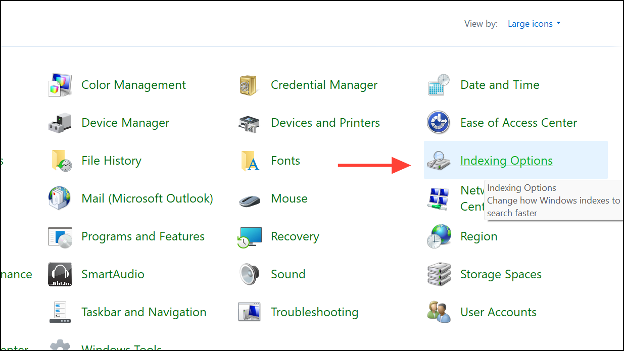 Step 2: Search for "Indexing Options" in the Control Panel and click on it.