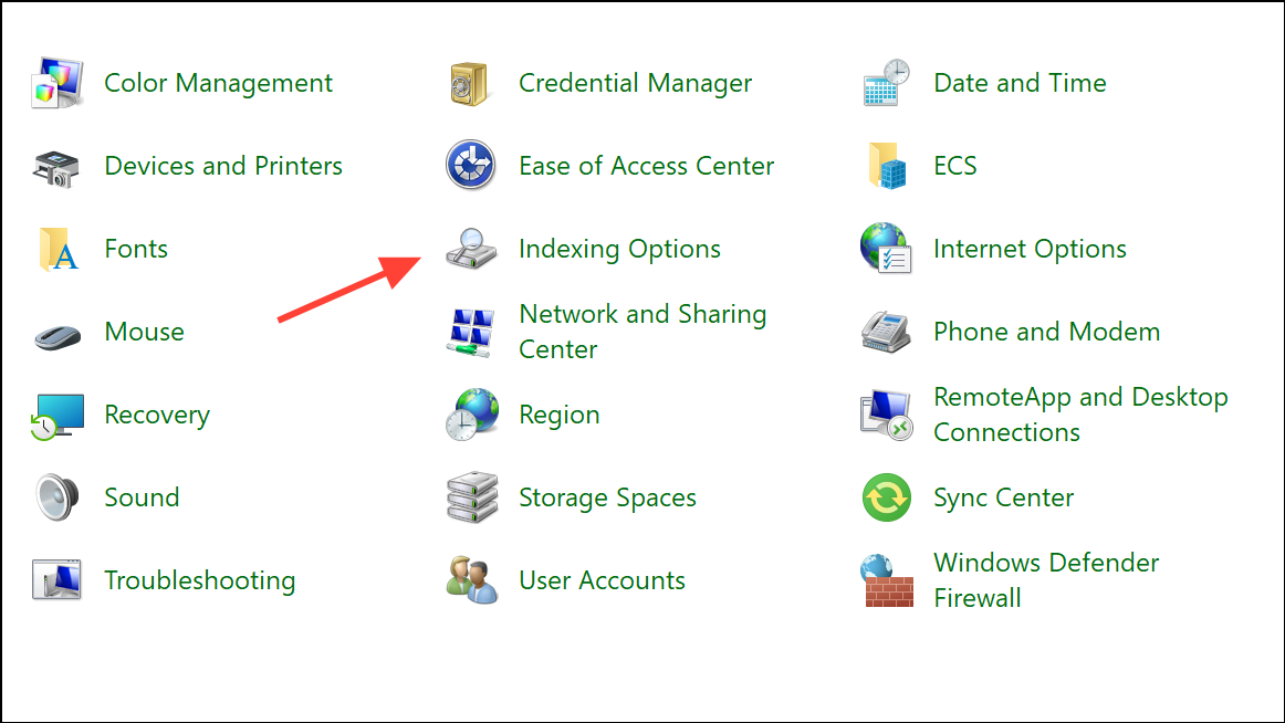 Step 1: Open the Control Panel (search for Control Panel in the Start menu) and select Indexing Options.
