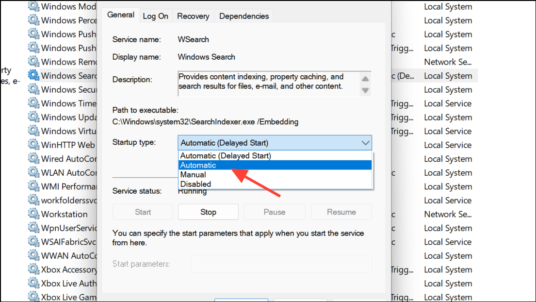 Step 3: Confirm that the Startup Type is set to Automatic. This ensures the service launches whenever Windows boots.