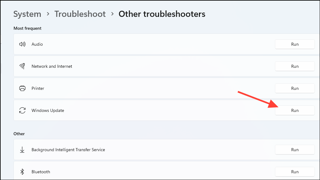 Step 3: Click "Run" to the right of Windows Update Allow the tool to detect and automatically fix any problems it finds.