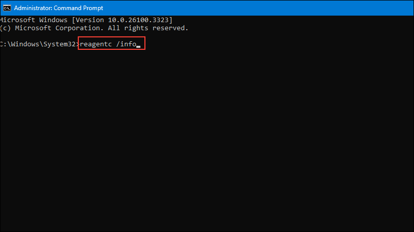 Step 2: Enter the command reagentc /info and press Enter. This shows you the current status and location of your WinRE partition. Note the disk and partition numbers from the displayed path.