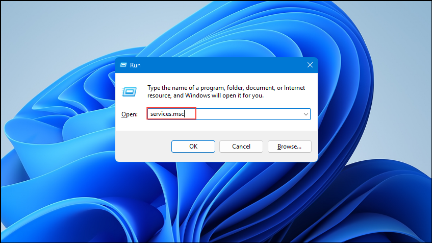 Step 1: Press Win + R, type services.msc, and hit Enter.