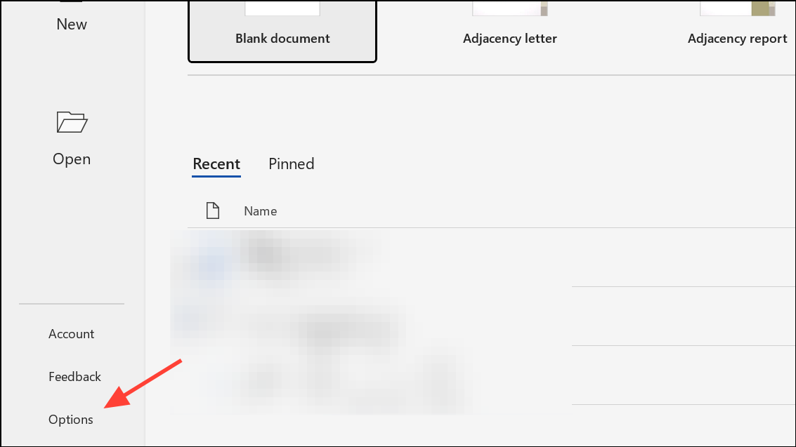 Step 1: Open Microsoft Word and navigate to the File tab, then select Options at the bottom of the sidebar. This opens the Word Options dialog.