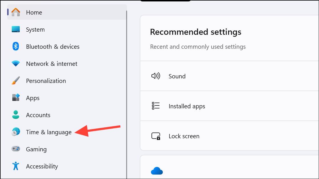 Step 2: In the left sidebar, click on Time & language.