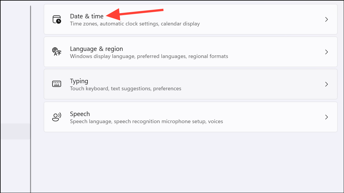 Step 3: Select Date & time from the right pane.