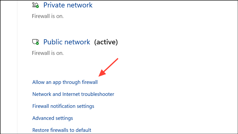 Step 2: Go to Firewall & network protection and select Allow an app through firewall.