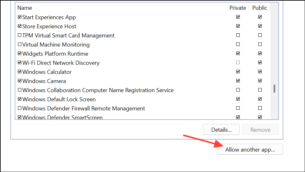 Step 3: Click Change settings, find VLC media player in the list, and check both Private and Public network boxes. If VLC isn’t listed, click Allow another app and browse to C:\Program Files\VideoLAN\VLC\vlc.exe.
