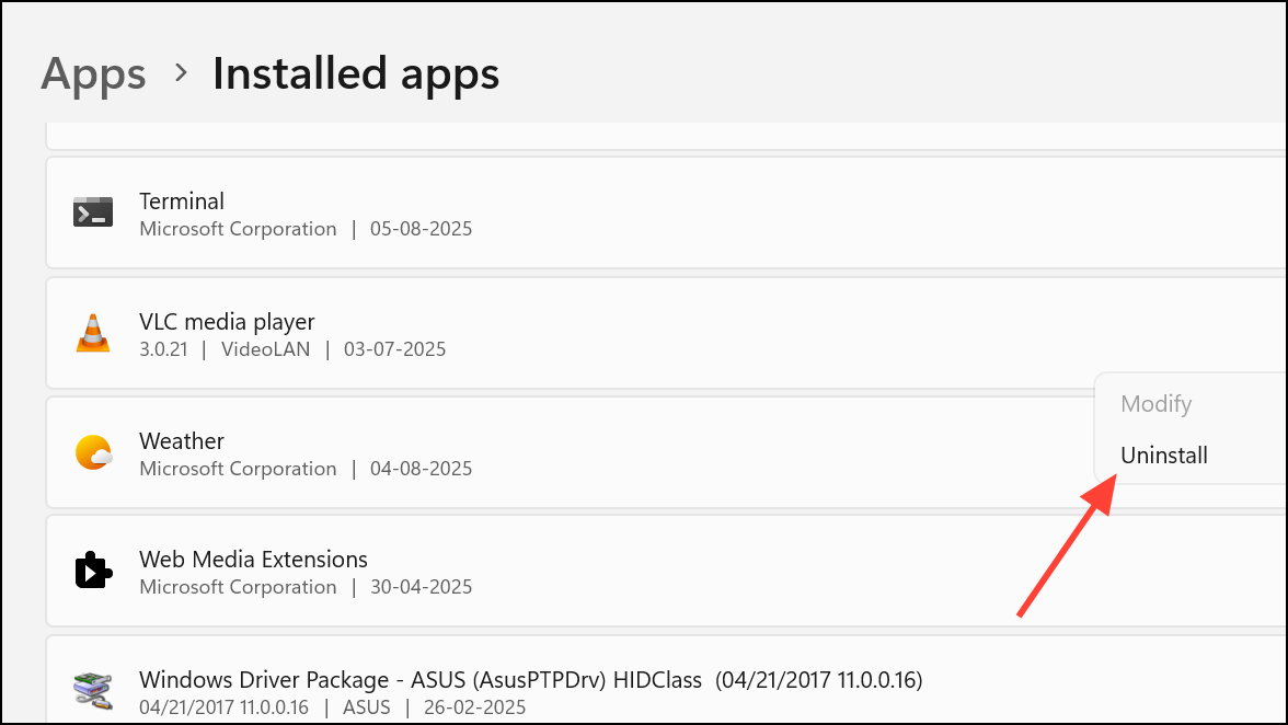 Step 2: If updating doesn’t solve the problem, uninstall VLC via Settings > Apps & Features, then download the latest version from the official VLC website and reinstall.