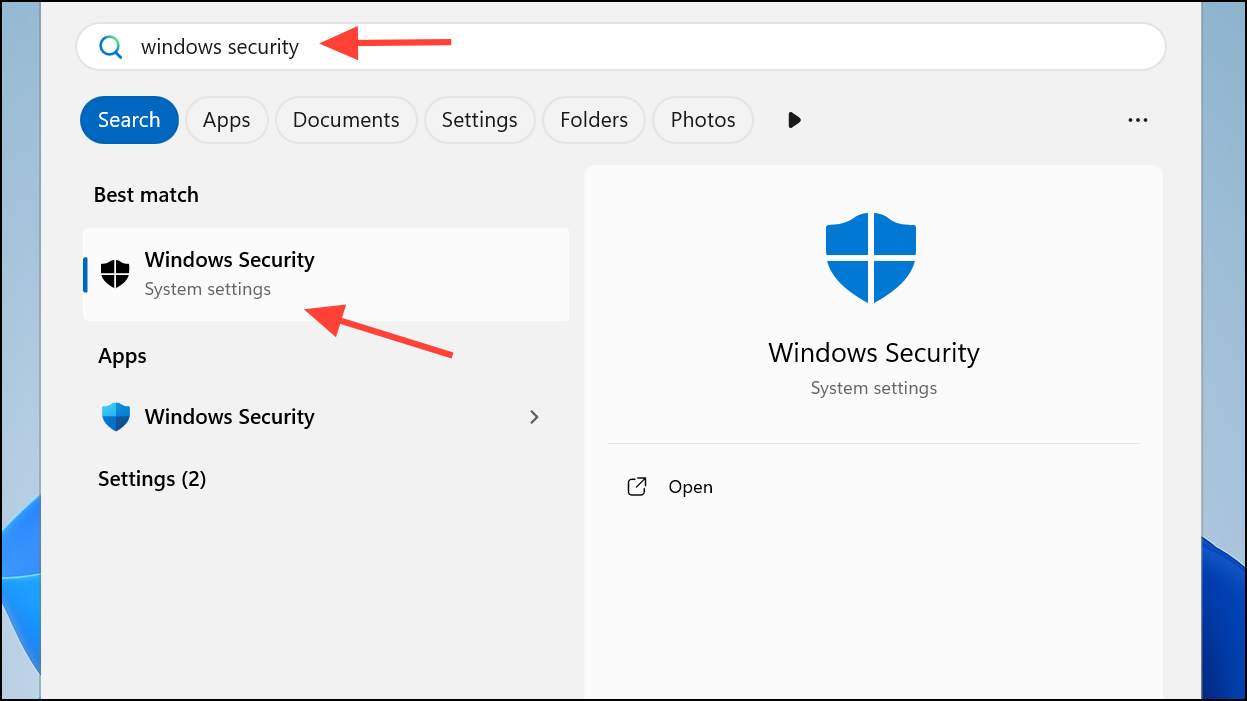 Step 1: Search for Windows Security from the Start menu and open the app.