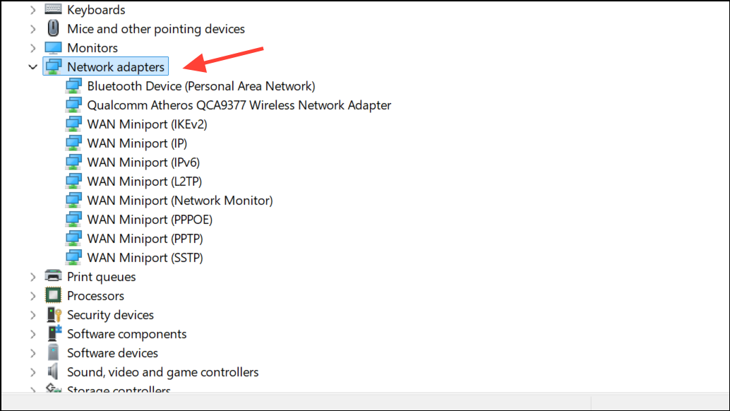 Step 2: Look for devices with yellow warning icons, especially under Sound, video and game controllers and Network adapters.