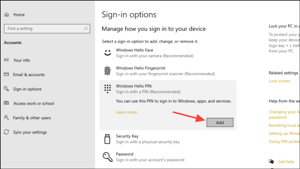 Step 9: After rebooting, set up a new PIN through Settings > Accounts > Sign-in options.