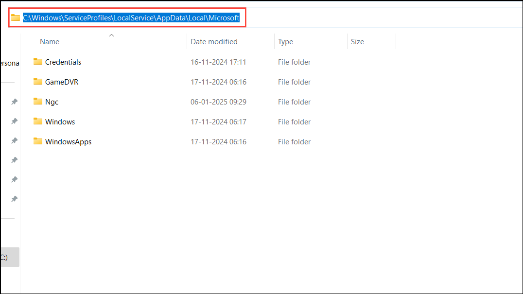 The NGC folder stores your PIN configurations. If it becomes corrupted, you may encounter the PIN error. Deleting this folder forces Windows to recreate it, potentially fixing the issue.