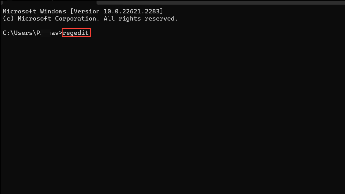 Step 4: In the Command Prompt window, type regedit and press Enter to open the Registry Editor.