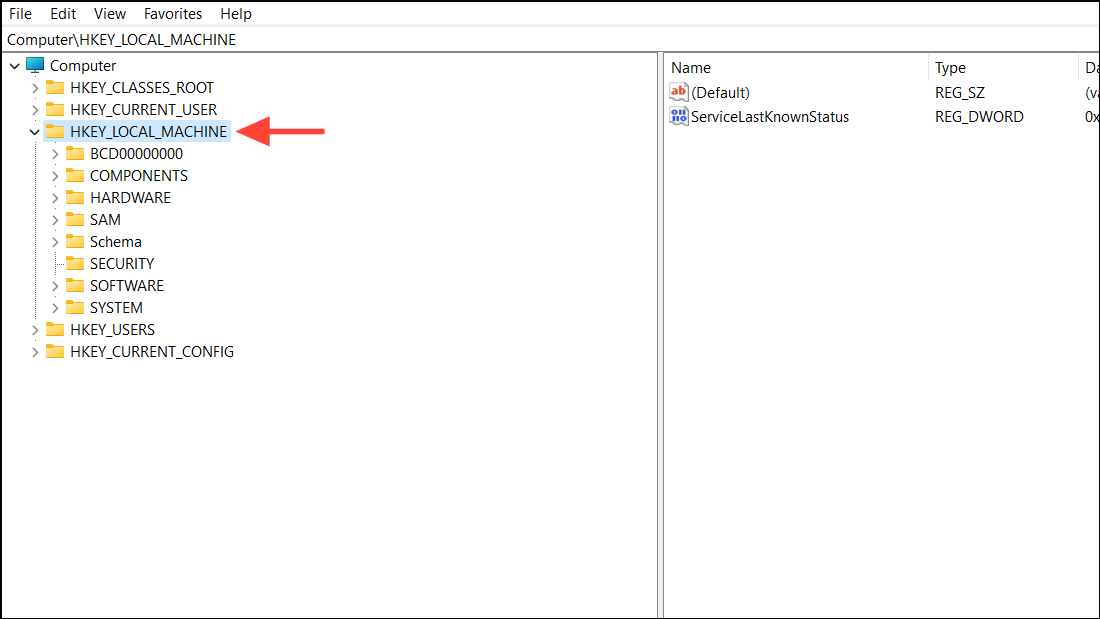 Step 5: In the Registry Editor, select HKEY_LOCAL_MACHINE.
