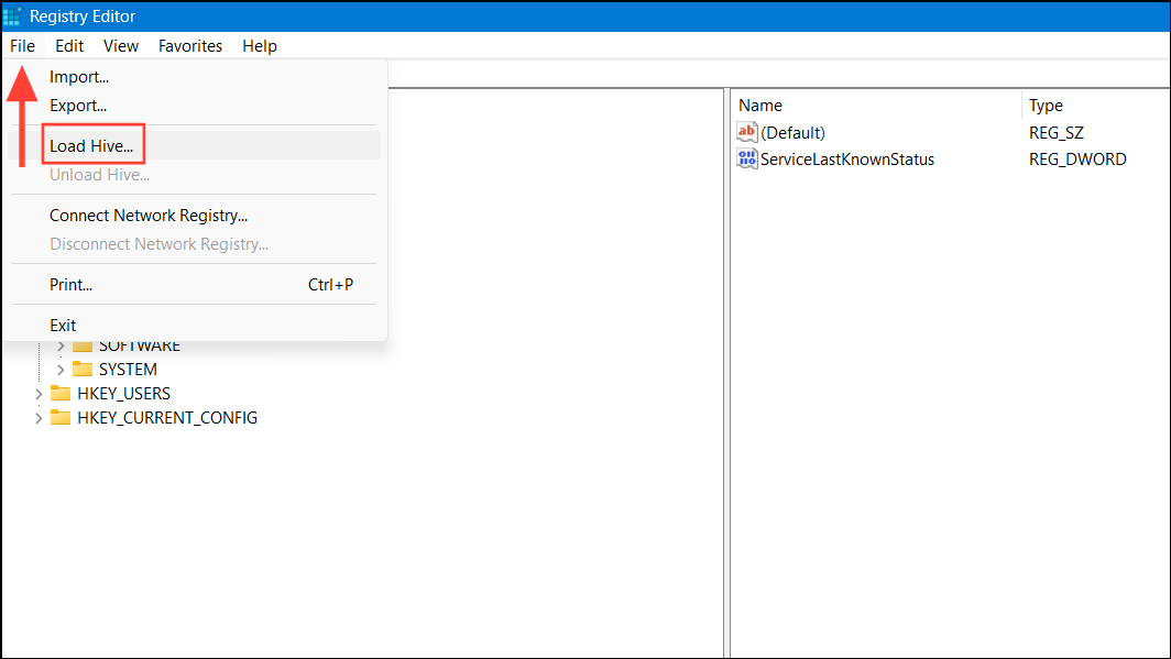 Step 6: Click on the File menu and choose Load Hive.