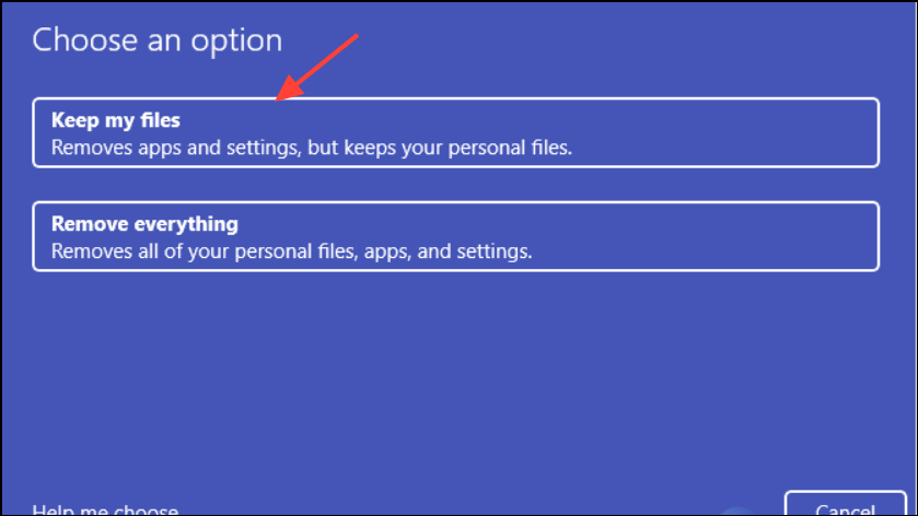 Step 3: Choose Keep my files.