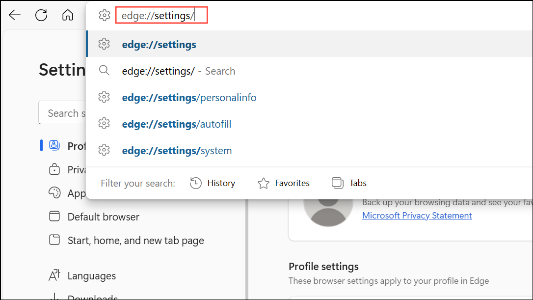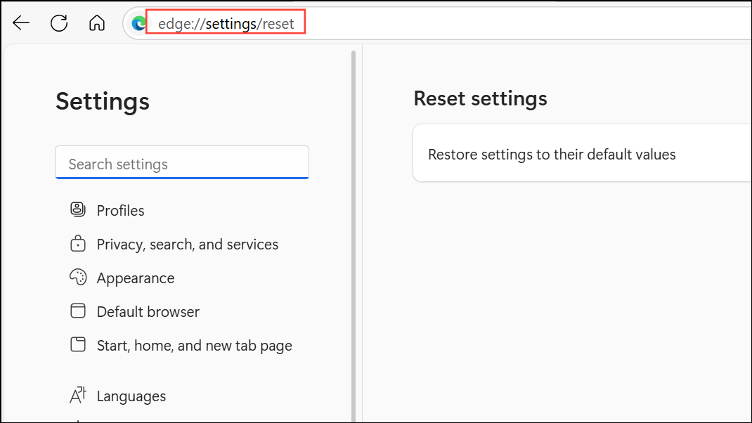 Step 1: In Edge, enter edge://settings/reset in the address bar.