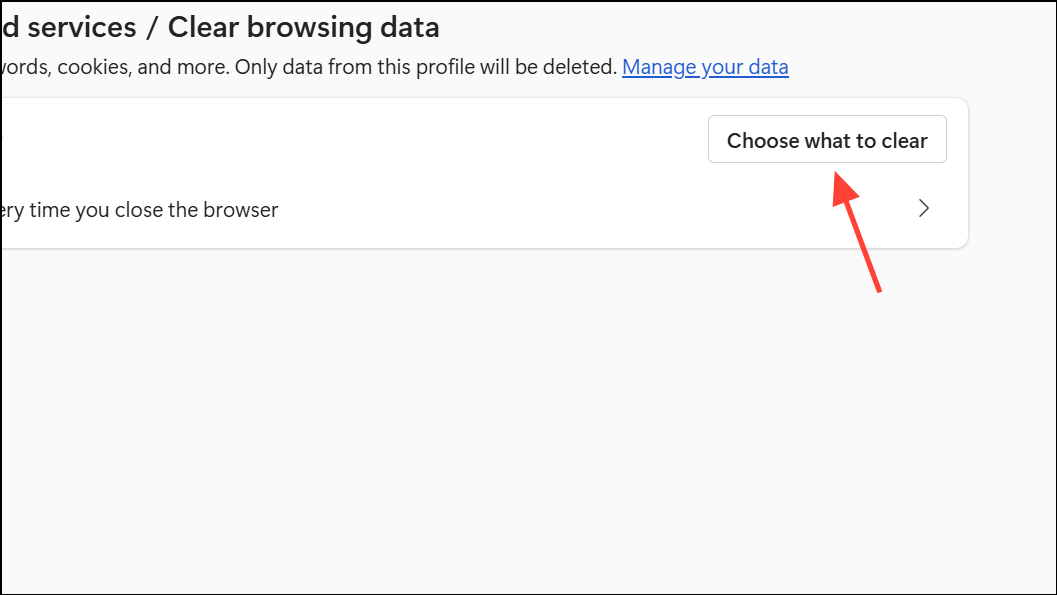 Step 3: Scroll to Clear browsing data and click Choose what to clear.