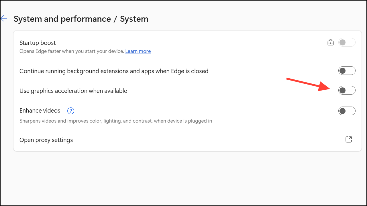 Hardware acceleration allows Edge to use your GPU for video rendering. If your graphics drivers are outdated or incompatible, this can cause playback issues.