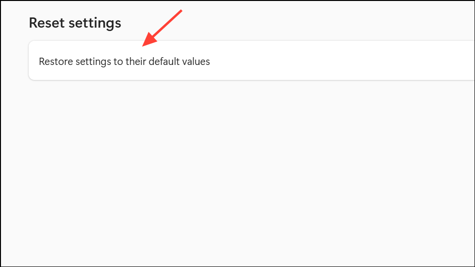 Step 2: Click Restore settings to their default values and confirm by clicking Reset.