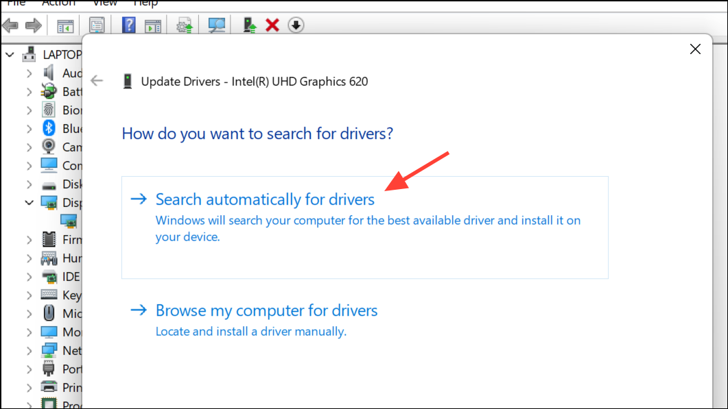 Step 3: Choose Search automatically for drivers and follow the prompts.