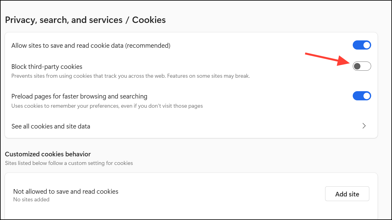 Blocking third-party cookies can interfere with embedded video players. Adjusting this setting may resolve playback issues.