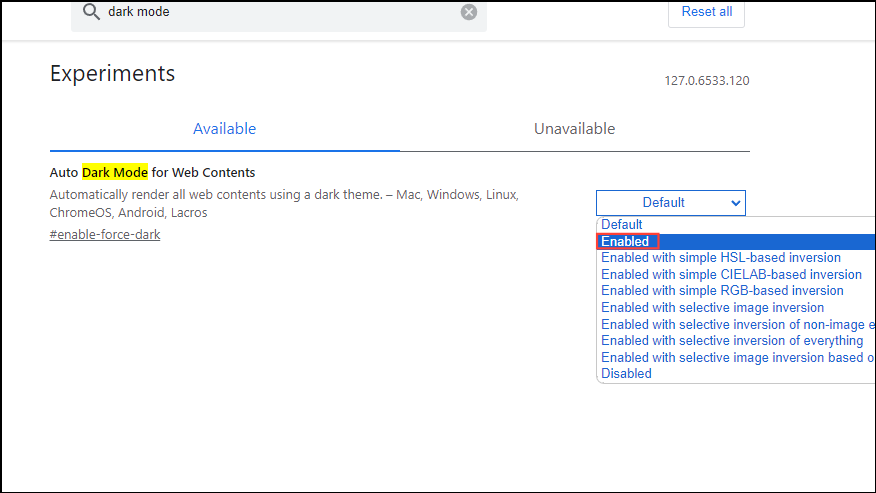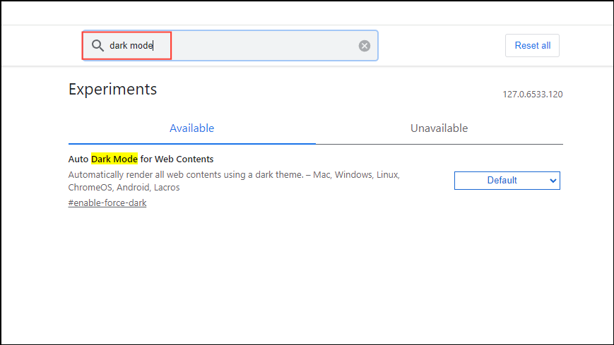Option 1: Enabling the Auto Dark Mode experimental feature
