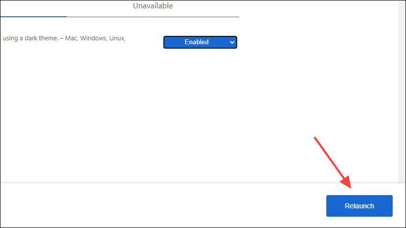 - Once you've enabled the feature, click on the 'Relaunch' button on the bottom right. This will cause the browser to close and open again, so save your open web pages.