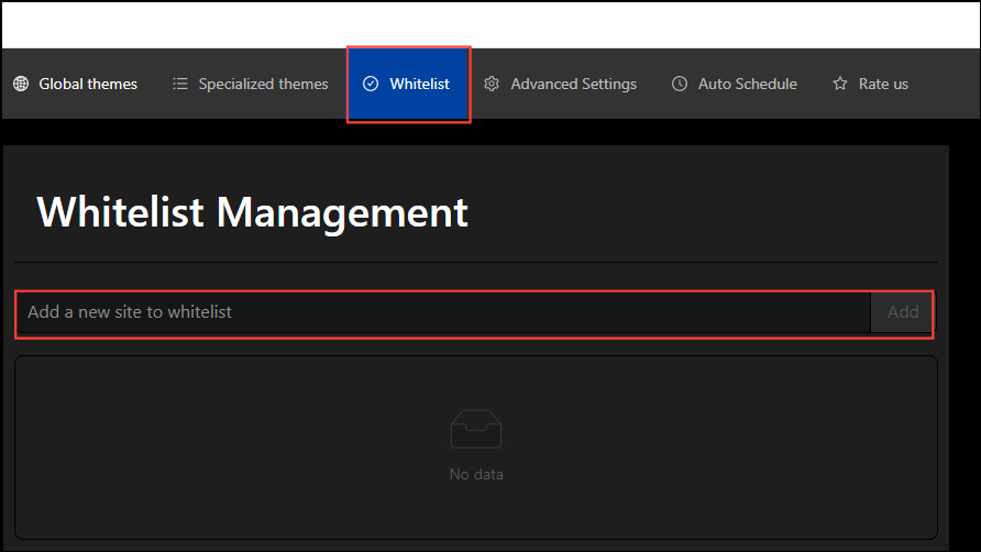- You can also add certain websites as exceptions by clicking on the 'Whitelist' tab at the top and then entering the URLs in the available box.