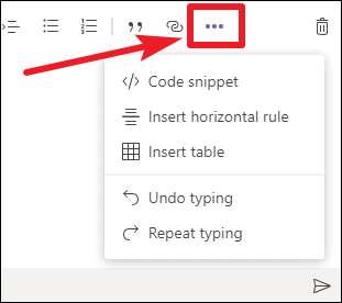 Step 5: For even more options, click on the More options button, represented by three dots (…) on the formatting toolbar. This allows you to insert tables, code snippets, quotes, and other advanced elements into your message.
