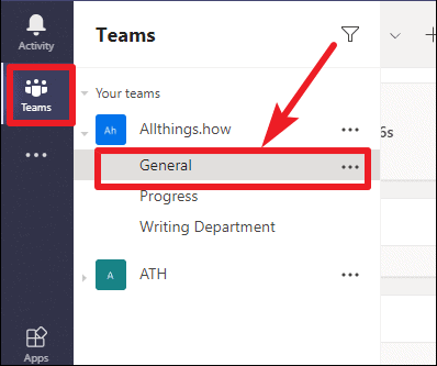 Step 2: If you're looking to format a message within a team channel, select the Teams tab on the left sidebar. Choose the specific team and channel where you want to post your message.