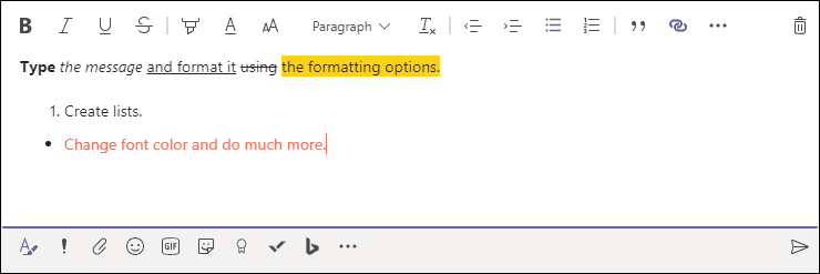 These formatting tools enable you to apply styles like bold, italics, underline, and more to your text in both personal chats and team channels. By leveraging these features, you can make your messages clearer and more engaging.