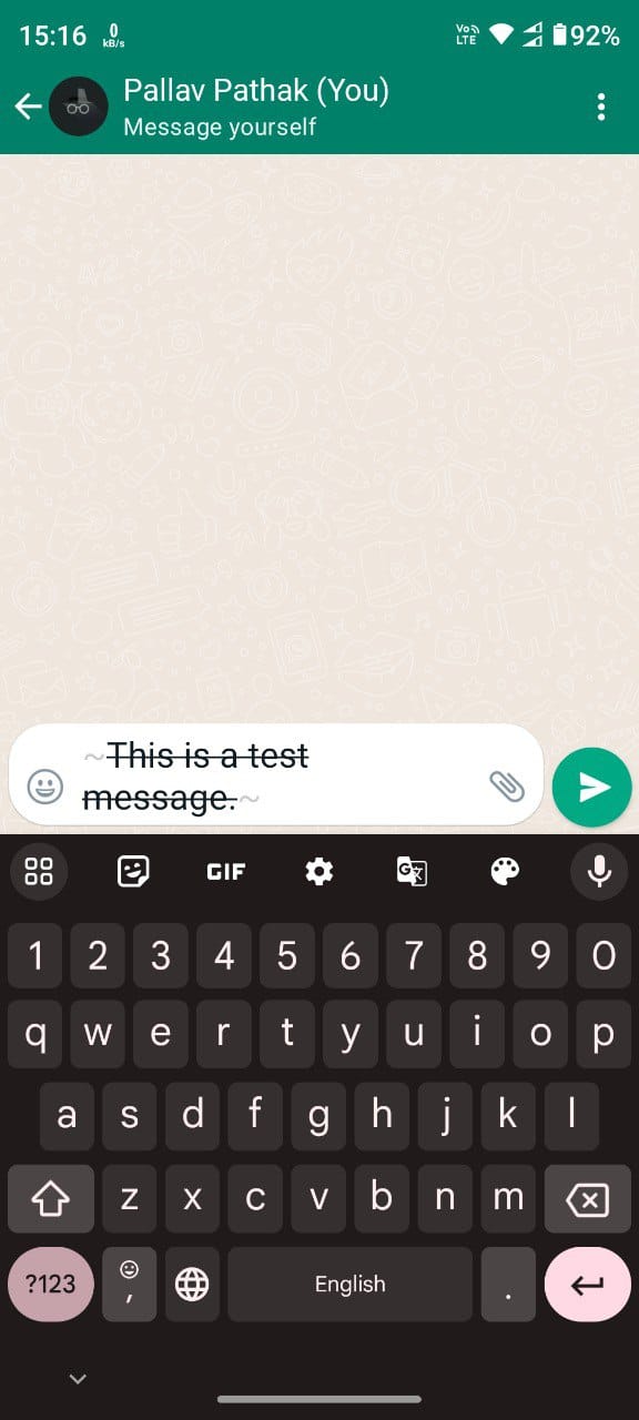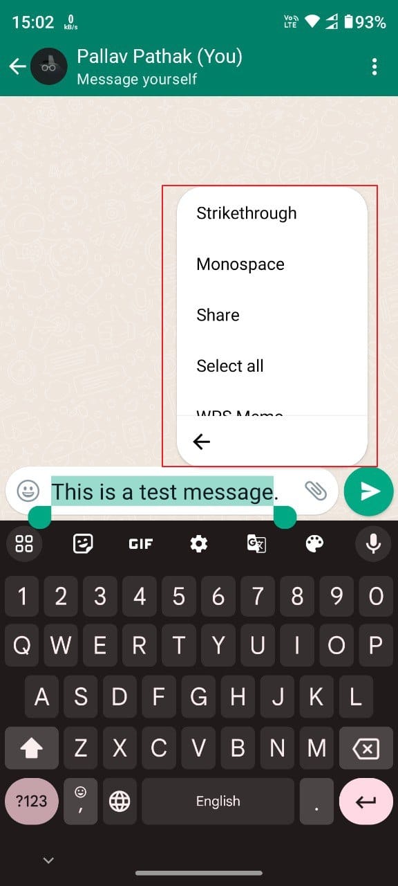 - Tapping on the 'Strikethrough' option will format your text accordingly, while the 'Monospace' option will change the font to monospace.