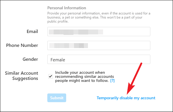 Note: You cannot disable your account temporarily from the Instagram app; you need to use Instagram from the browser.