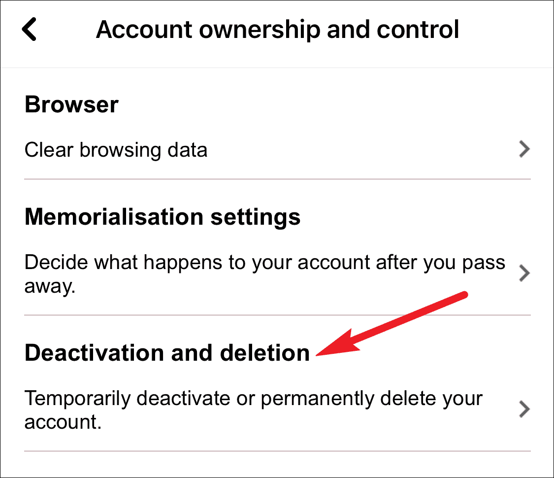 Tap on ‘Deactivation and deletion’ from Account ownership and control settings.