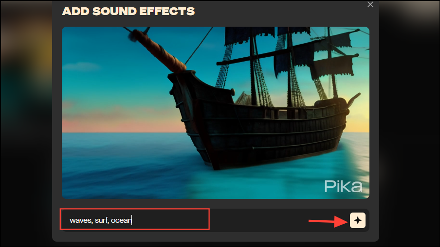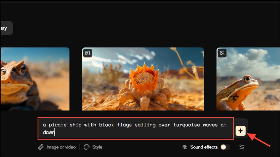 - You will get a text box where you can type in and describe the sounds you want to add. Once you've described your sounds, click on the 'Generate' button.