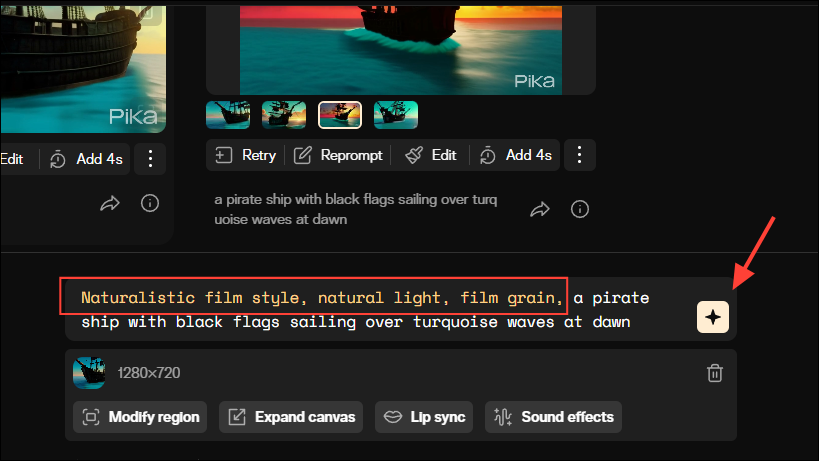 - When you choose a style, you will see additional phrases added to your prompt. Click on the 'Generate' button again to generate the video in the new style.