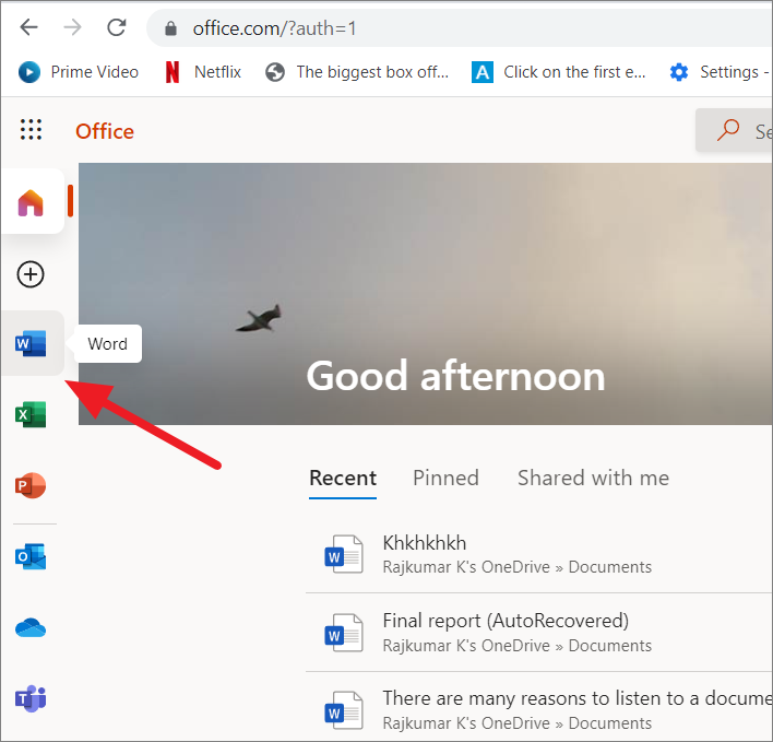 Open a web browser and head to office.live.com and log in with your Microsoft account credentials to access Microsoft apps. Then, click the ‘Word’ icon on the left side of the screen.