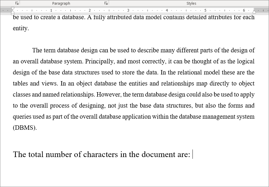 Now, the total number of characters will appear where you had placed the cursor in the document as shown below.