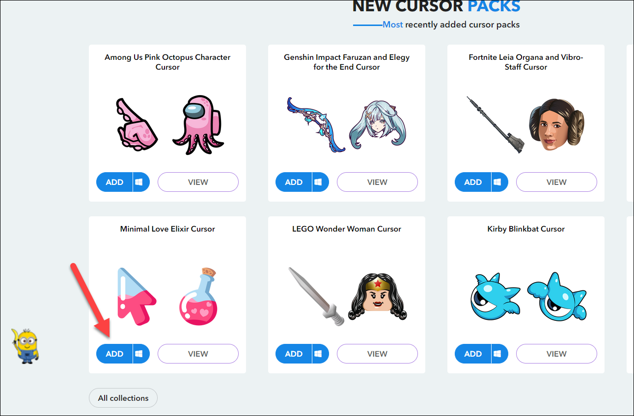 You’ll be redirected to their website where new cursor packs are being added constantly. Then, click ‘Add’ on any pack that you would like to add to your collection.