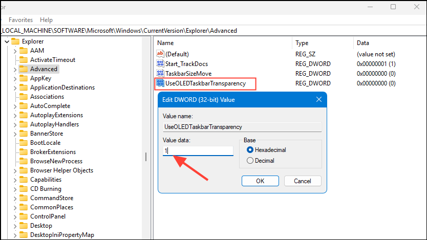 You can edit the Windows Registry to make your Windows 11 taskbar transparent. However, make sure to back up the registry first because making changes to it without proper knowledge can cause problems and make your PC unusable.