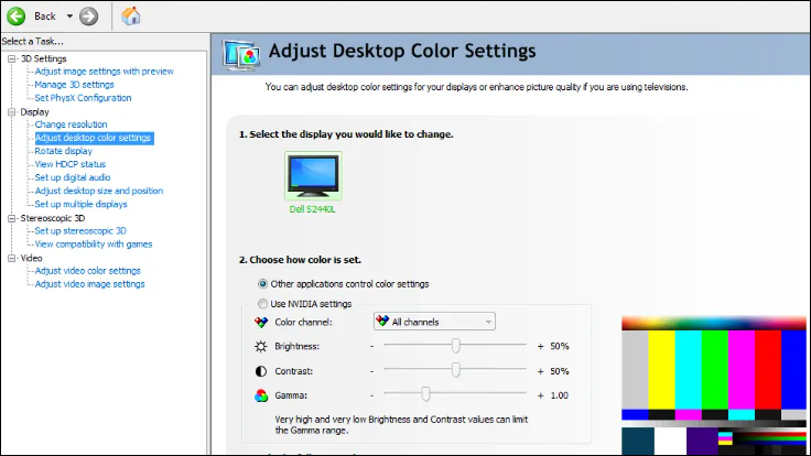 - Open the Nvidia Control Panel and go to 'Color Settings' or search for 'Adjust Desktop Color Settings'.