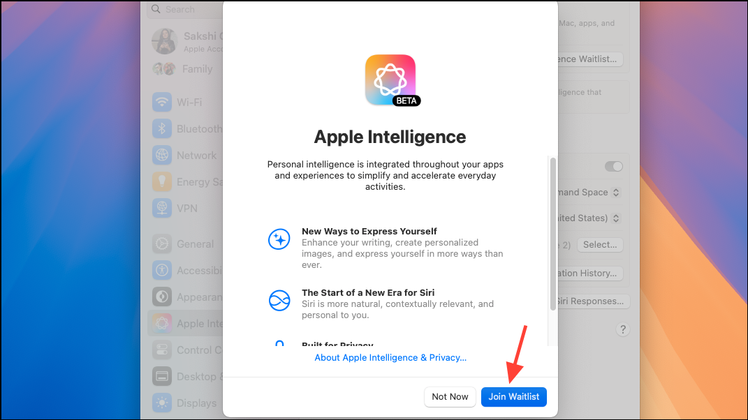 - Restart your PC and navigate to the Apple Intelligence menu again. Then, click on 'Join Waitlist'.